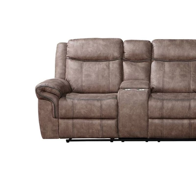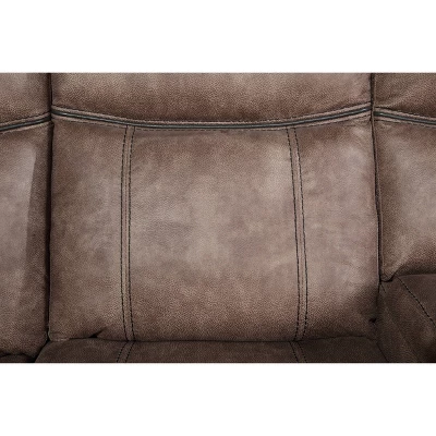 The Dollum collection is ideal for those who seek casual comfort in their home. At a glance, the collection shows off its comfortable design with its plush pillow arms, plush backrests and headrests, and reclining seating. Contrast stitching provides a touch of detailed texture to create visual depth against the two-tone chocolate velvet. The sectional sofa features a console with two cup holders and storage with USB and AC power ports, perfect for your casual home.