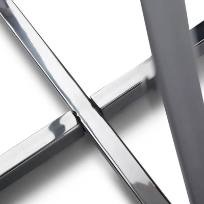 - Featues a round marble table top complemented by an X shaped chrome base