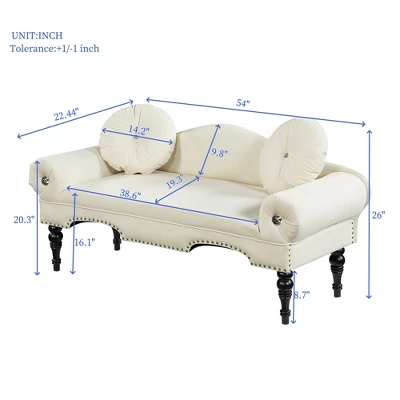 This 54-inch mid-century modern velvet loveseat boosts any room’s aesthetic with charming details: rolled arms with big diamond buttons, a curved backrest, and nailhead trim on the bottom edge. It comes with 2 round pillows, doubling as a decorative accent that fits various styles—ideal for living rooms, bedrooms, or entryways as a functional bench. Beyond its looks, it’s practical for small spaces: the compact 2-seater fits corners well. Comfort and durability are key: it’s wrapped in high-quality, wrinkle-resistant velvet for a soft feel. Cushions are filled with thick, resilient foam for cozy support. The frame is made of kiln-dried wood for stability, with a 400-lb weight capacity for reliable daily use.​In summary, this loveseat combines style, functionality, comfort, and durability. It enhances spaces, suits small areas, assembles quickly, and lasts long—perfect for upgrading seating in any home.