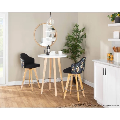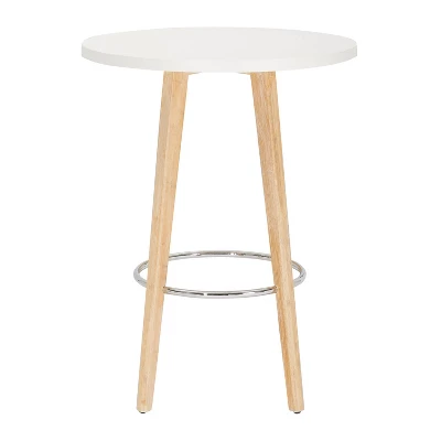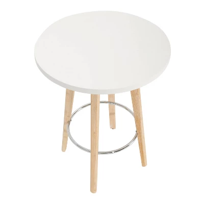 The contemporary charm of the Ahoy Counter Table by LumiSource combines sturdy construction with aesthetic appeal. A unique round wood top and tapered white washed legs are accented by a chrome footrest. The versatile design will fit with any home décor style. Pair it with the Ahoy Counter Stools for an easy sitting area!