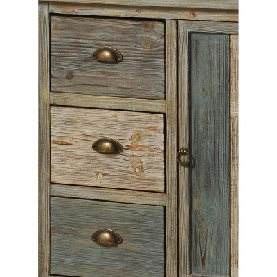 Never be short on space with the Sanibel Cabinet featuring three drawers and one door for added storage. Its wooden construction is complemented wonderfully with a blue and gray finish. It works wonderfully for either the kitchen or bedroom. Add a touch of style to your living room or family room. Complete with a blue and gray stain finish, this simple yet on-trend design will lend understated, elegant style to any room. Place it wherever you need extra storage, like the bedroom or foyer. This piece exemplifies superior product design and great styling. It will pair well with farmhouse styling. Due to lighting and monitor differences, actual colors and finishes may vary slightly from what appears online.