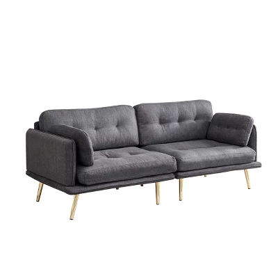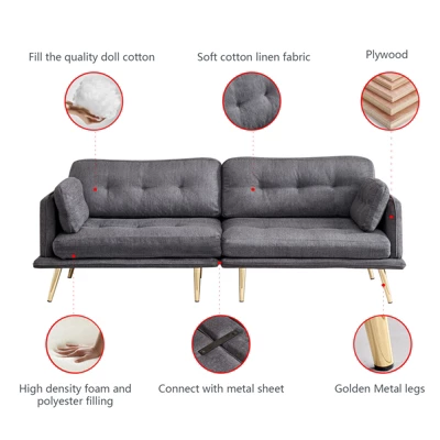 - 【Sturdy Structure】The interior frame of this mid-century modern cotton and linen sofa is made of plywood, making it very sturdy in structure. Eight attractive gold-tone metal legs provide sturdy support to this comfortable sofa. Maximum weight capacity is 800 lbs.