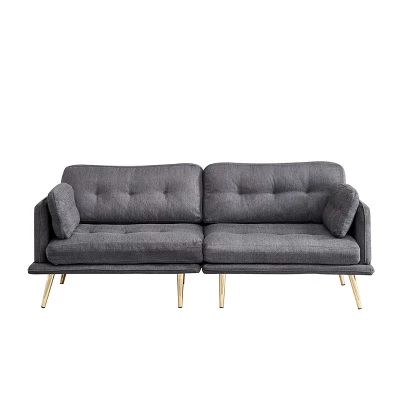 This mid-century modern sofa will bring an element of elegance to your home. Made of soft cotton and linen with tufted appeal. It makes you feel very relaxed and comfortable while sitting on it. Eight attractive gold-tone metal legs provide sturdy support to this comfortable sofa. You will fall in love with this sofa.