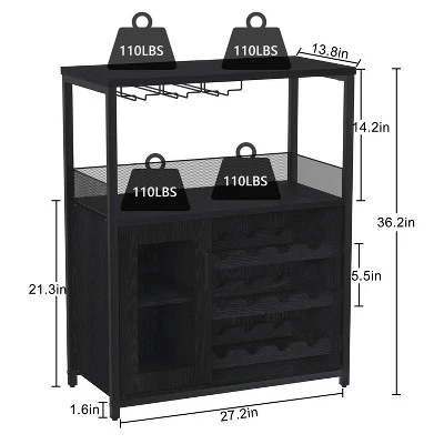- WINE CABINET WITH LARGE STORAGE: Our wine bar cabinet features a well-designed layout with a wine rack, glass holders, storage shelves, and a cabinet. The spacious tabletop provides ample space for your coffee maker, microwave, and other items. The open middle shelf is ideal for storing goblets, wine bottles, and decanters, while the bottom area is good for wine bottles and ice buckets.