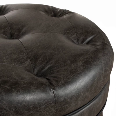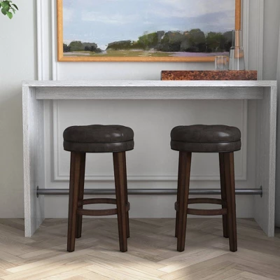 Sharing stories and making new memories seated together at a bar top with family and friends is a timeless experience. And with this backless wood Counter Stool, what you’re seated on is just as timeless. Crafted with clean, classic lines, this stool features a wooden base in a charcoal gray finish, plus a tufted, 360-degree swivel seat upholstered in charcoal gray faux leather that gives this piece a traditional-yet-modern monochromatic touch—allowing it to be versatile enough for many types of dining and entertaining spaces for years to come. Assembly required.