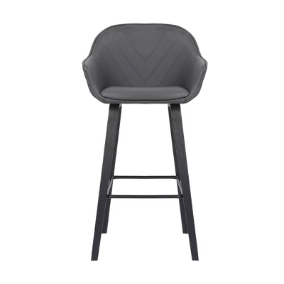 The Armen Living Crimson kitchen bar stool is an excellent choice for a modern kitchen or home bar. A highlight of the Crimson barstool is its durable black brushed wood construction and the inclusion of a convenient square metal footrest for support. The stool has a durable wood supported seat that features a medium-high back, which allows for excellent support that helps you and your guests maintain proper posture. The intricate layered V-design featured on the beautiful faux leather upholstery adds to the uniqueness of the bar stool. The stool’s foam padding assures a comfortable and relaxing experience. The Crimson barstools are a furniture peice that is certain not to disappoint and comes in your choice of 26-inch counter height and 30-inch bar height