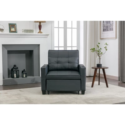 Introducing our versatile 34.26″W Single Sofa Bed, upholstered in premium Faux Leather, Linen, or Tech Cloth fabrics. This convertible sleeper chair features a modern design with USB ports, cup holders, and convenient side pockets, perfect for relaxation and entertainment. Crafted with a durable steel and wood frame, and filled with sponge for comfort, it ensures long-lasting support. The adjustable backrest offers three reclining angles (100°, 140°, 180°), providing personalized comfort whether you’re lounging, reading, or sleeping. Ideal for small spaces or as an additional seating and sleeping option, this sofa bed combines functionality with contemporary elegance.
