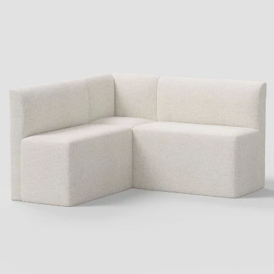 Add a touch of sophistication to your dining room with this 3-Piece Cora Dining Set with Chair and 2 Banquettes from Threshold™. This dining set includes a corner chair and two banquettes for ample seating. Supported by a wooden frame, the pieces are upholstered to offer a comfortable sitting experience. Plus, the solid color complements makes them easy to pair with any existing decor.