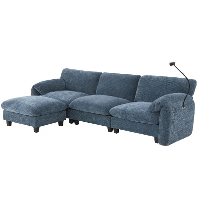 Elevate your living space with our Modular Sectional Sofa, an absolute game-changer. The armrests are a stroke of genius, housing handy storage pockets for stowing essentials, a phone holder that keeps your device within easy reach and safe from disappearing into the couch, and charging ports to power up your gadgets hassle-free. Sink into the plush softness of the armrest pillows as you relax on the remarkably wide seats, supported by ultra-thick cushions that guarantee long-lasting comfort, whether you’re engaged in a movie marathon or taking a well-deserved rest. Comprising flexible modules, this sofa is a chameleon, adapting to any room layout with ease. Paired with a versatile ottoman that can be a seat, footrest, or coffee table substitute, it unlocks countless spatial possibilities. The side storage pockets cleverly utilize extra space, keeping your living area neat while allowing quick access to items. Wrapped in high-end Chenille fabric, the sofa exudes elegance and offers a delightfully soft touch, enhancing any decor.