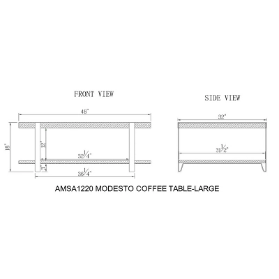 Featuring exquisite workmanship of solid wood tops with wrapped metal strap and metal legs, the Modesto collection furniture will last for years to come. The rustic wood finish highlights the cracks, knots, and wood grain that is unique to each piece. Modesto 48″Wide large coffee table is perfect in front of your favorite couch. It’s large top and shelf below provide extra room for your favorite items to display and store. Makes a statement in your living space with its rustic wood styling and strong metal legs.