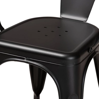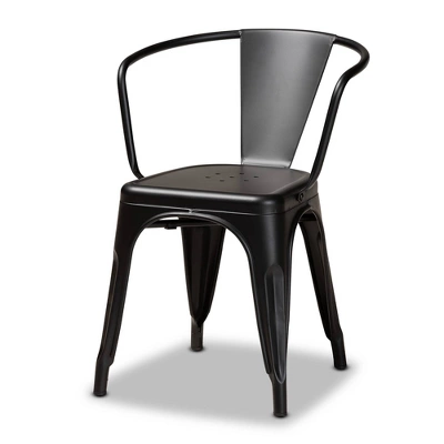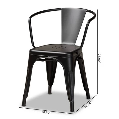 Give your dining room a sleek, industrial overhaul with the Ryland dining chair. Made in China, this set includes four chairs constructed from metal featuring a dark grey finish. Its curved backrest forms convenient armrests while its open design allows light to flow more easily throughout the room. The Ryland will arrive fully assembled and is set on top of angled legs for excellent stability and support. The robust style and smooth comfort of the Ryland dining chair are sure to elevate any dining experience.