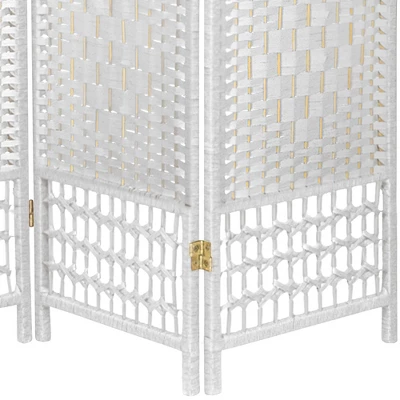 Bring an instant update to your space with the bold look of this Tall Fiber Weave Room Divider from Oriental Furniture. This three-panel room divider is the perfect solution, whether you want to separate your bed from your living space in a studio apartment or you want to tuck away a reading corner. With the hardwood, this screen makes for a durable divider and can be arranged however you like.