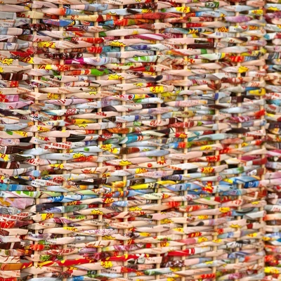 The Tall Recycled Magazine Room Divider 4 Panels is neutral yet dynamic, with snappy stripes to stretch the eye across the 4 panels of this folding screen. At 5 1/2′ tall, this decorative frame adds striking visual geometry to interiors, effectively concealing areas and creating temporary spaces. Its hardwood frame folds at the joints for easy transport.