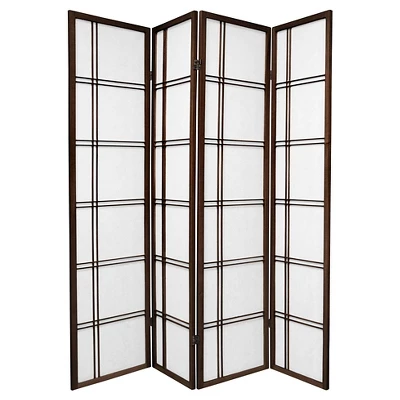 Give classic elegance to your room decor with this timeless 4-Panel Double Cross Shoji Screen from Oriental Furniture. This tall and elegant four-panel room divider comes with a sturdy hardwood frame and a delicate Shoji screen that sections off your space, providing privacy without blocking out the light for an open, airy feel in your living space. This chic folding screen is the perfect solution to creating a private space while giving a fine contemporary accent to your living area. Sturdy metal hinges ensure easy folding of panels in any direction while the lightweight construct allows for easy portability so that you can switch to any room for an instant makeover.