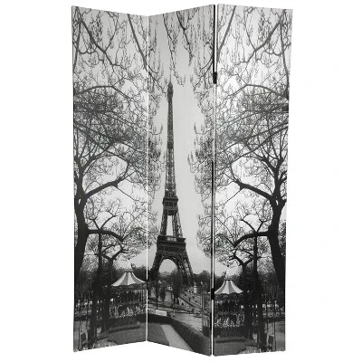 Bring Parisian flair to your space with the Double-Sided Paris Room Divider from Oriental Furniture. This six-foot room divider features black and white photographic prints on each side – one of the Eiffel Tower, and the other of the Arc De Triomphe. The three panels are easy to adjust to your desired width, and the screen is a great way to break up studio and efficiency apartments or to add privacy to dorm rooms and shared bedrooms.