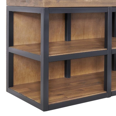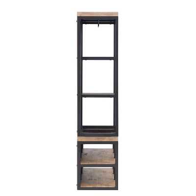 Keep your entryway or hallway organized with this hall tree with bench. The hall tree with bench is both beautiful and functional, providing ample storage and style for your home’s entryway or hallway. Made from acacia wood and metal ,the mix of materials gives this hall tree an industrial, modern look. Features 3 side shelves for storing backpacks, shoes, and more colorful baskets or a plant add a nice decorative touch. Includes a bench for you to comfortably sit and take off your shoes and shelves underneath for storing them.