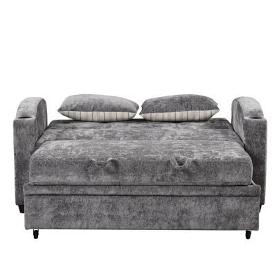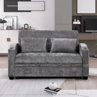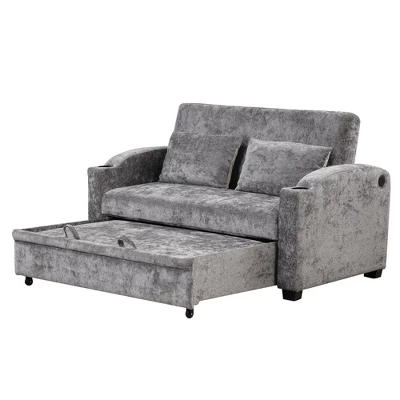 - Pull-Out Sofa Bed This versatile sofa bed easily converts between a loveseat and a bed. The tail pulls out like a drawer, assisted by a portable handle and bottom pulley for quick and smooth transformation, providing convenient sleeping space for guests or family.
