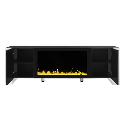 Featuring simple, clear shapes and a classic color combination, this TV stand adds a sleek and stylish touch to your room. The standout feature is the 34.2″ electronic fireplace, which not only enhances the aesthetic of your space with its realistic fire effect, but also creates a cozy, romantic atmosphere perfect for relaxing or entertaining. In addition to the visual appeal, this TV stand offers ample storage space to keep your living area organized. The spacious tabletop provides room for your TV and decorative items, while two large cabinets with shelves allow for the storage of entertainment equipment, magazines, and other essentials. Plus, its high-gloss door panel and smooth surfaces make it easy to clean and maintain, ensuring the TV stand stays looking pristine for years to come. Overall, this TV stand with an electronic fireplace offers a perfect combination of style, functionality, and safety, making it an excellent addition to your living space.