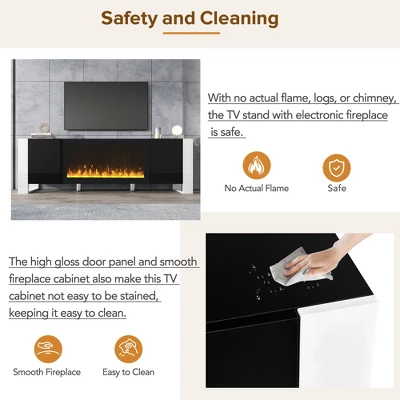 - 【Easy to Clean】The high-gloss door panels and smooth surfaces of the fireplace cabinet make it resistant to stains and easy to wipe clean, ensuring long-term maintenance with minimal effort.