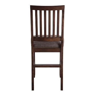 The Yorktown 7pc Counter Height Dining Set exhibits mid-century modern influences in a lustrous espresso finish over mindi veneers with the bonus of under table storage. Transitional styling with tapered legs and double top design blends well in many decors. Counter Chairs feature a comfortable seat upholstered in an easy to care for gray tweed fabric. Sturdy solid wood frame with stretchers for added strength and stability Your purchase includes one counter height table and six counter height chairs. Dimensions: 60 W” 42 D” 36 H”