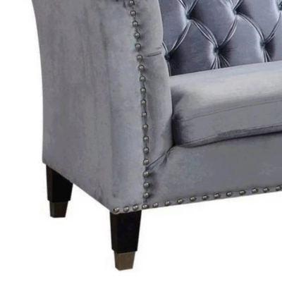 The Honor Sofa collection it’s the perfect option for your living room with comfortable and stunning features. Strength an beauty are guaranteed with sturdy wood frame, soft velvet upholstery, button tufted detailing and high shelter armrests. The Black wooden tapered legs and Nailhead trim complement these beautiful pieces adding an extra element of elegance. Fabric upholstery is an economical, environmentally friendly way to show off your eye for style and color. It allows for a multitude of patterns or color options.