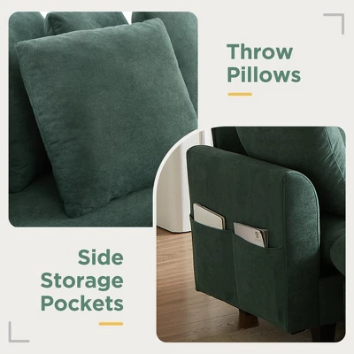 Upgrade your living room with this stylish 83″ L-shaped sectional sofa, designed for both comfort and smart functionality. Upholstered in luxurious chenille fabric, this sectional features pocket springs and high-density foam cushions (4.7″ thick) for exceptional support. The included movable ottoman doubles as extra seating or storage space, while six coordinating throw pillows add style and coziness. Practical side storage pockets keep remotes and magazines within reach, and elegant curved armrests enhance the contemporary design. With a 300lb weight capacity per seat and durable plywood frame, this versatile sofa is perfect for family gatherings, movie nights, or everyday relaxation.