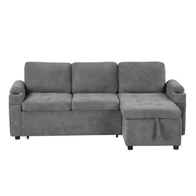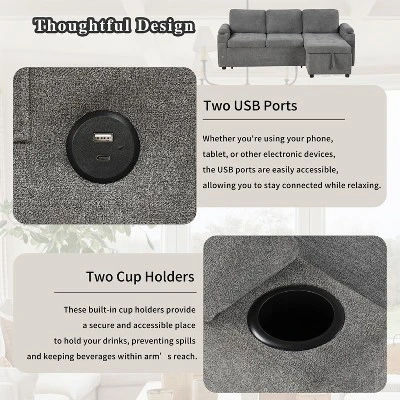 This L – shaped sofa has a sleek, modern look that fits any decor. It’s both stylish and practical. Functionally, it can quickly turn into a sofa bed for guests or extra space. The reversible chaise can be adjusted to your room layout. There are multiple storage areas like in the chaise, armrests, drawers, and side pockets for keeping your space tidy. Plus, it has two cup holders on each armrest and two built – in USB ports for added convenience. Besides, made of high – quality chenille fabric and filled with dense foam, it offers great comfort while the sturdy frame ensures long – term use. In summary, this multifunctional L – shaped sofa perfectly combines stylish design, comfortable experience, and powerful functions. It can easily handle both daily use and entertaining guests, making it an excellent choice for modern and dynamic living spaces.