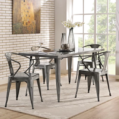 Welcome an industrial vibe with the Alacrity Table Series. Streamline decor with tapered gunmetal gray finish steel legs and top bolster this inspiring piece made for eclectic decors. Whether you prefer the strip-down warehouse look or a more diverse blend of vintage and modern elements, Alacrity is an easy-to-assemble sturdy table that will aptly complement your urban or rustic farmhouse dwelling. This installment of the series is a rectangular dining table that stands ready to enhance your dining experience.