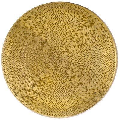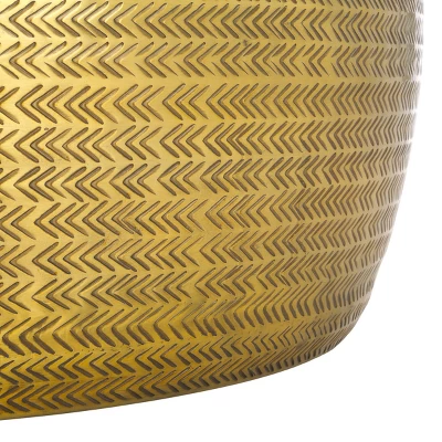 Lend an elevated and polished touch to any room with our Apoline coffee table with storage. With a gleaming finish, rich artistry, and added storage, our coffee table brings convenience and charm to any room. Its round drum shape is made from aluminum with a stunning finish. With an intricate chevron pattern engraved onto its surface, our coffee table serves as a glamorous and charming centerpiece for any room. Its top can easily be removed to reveal roomy storage inside for keeping your lounge or bedroom tidy at all times.