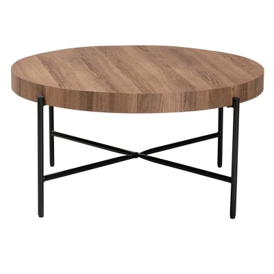 Introduce a visually impactful anchor to your space with the stunning Umar coffee table. Made in China, this handy piece radiates industrial style with a solid metal base topped with a wood tabletop. The circular tabletop provides ample space for living room essentials while a touch of smooth geometry to your interior. The Umar requires assembly and features metal legs connected by a crisscross base for excellent stability and support. An efficient piece characteristic of modern minimalism, the Umar coffee table is a fantastic addition for any common space. Overall: 31.50″ W x 31.50″ D x 15.90″ H; Table Top: 31.50″ W x 31.50″ D x 2.40″ H; Clearance: 4.30″ H;