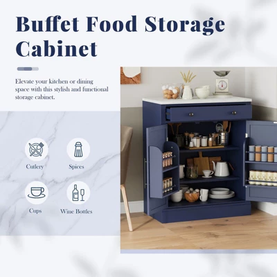 Elevate your kitchen or dining area with the TOPMAX Modern Freestanding Kitchen Pantry Cabinet, the epitome of elegance and functionality. Crafted from high-quality P2 Grade MDF and featuring a chic faux white marble veneer, this cabinet not only reinforces durability but also enhances your space with a sophisticated touch. Its well-designed layout includes two adjustable shelves and a spacious pull-out drawer, ensuring efficient storage and organization for all your kitchen essentials. The sleek design maximizes storage without taking up too much space, making it an ideal choice even for smaller apartments. It’s time to create a clutter-free and stylish atmosphere in your kitchen with this versatile cabinet that meets both your aesthetic and functional needs.