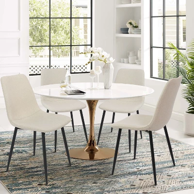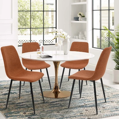 This Bingo Upholstered Side Chair from Maison Boucle would make a handsome addition to your modern home! The matte black, slimline legs allow for a visually open style which maximizes the look of space around your dining table. The leg is assembled already to make sure it airy but stronger structure, and you only need 4 screws to put together. Oh, the stunning terra color is our favorite of this season. These are guaranteed to be a hit in your contemporary home. You could complete the look with the counter stool from the same collection.