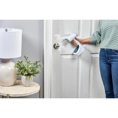 Enjoy easy garment care at home and on the go, with the Black+Decker™ Easy Store Handheld Steamer with a foldable steamer head and 25% more compact* design for hassle- free travel and storage. Its easy-to-fill water tank has a 150ml capacity for up to 7 minutes of continuous use so you can quicken and easily freshen clothes on the hanger, revitalize drapes or steam upholstery. A powerful steam burst delivers 18g/min to tackle tough creases or stubborn marks while its heated metal plate smooths wrinkles like an iron. Steaming also kills up to 99.9% of bacteria in up to 60 seconds**. Need to get rid of pesky fluff for a flawless presentation? Its detachable lint brush has it covered. Thanks to a 10ft long power cord you can steam from a comfortable position wherever you are in most rooms with a power socket. Once plugged in, it heats up in just 45 seconds so whatever the job, you’ll get everything done fast
