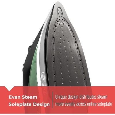 - Even Steam Soleplate Design – The advanced soleplate design is engineered to produce consistent steam flow from heel to tip for fast, professional results vs BLACK+DECKER IR08x standard iron with standard soleplate