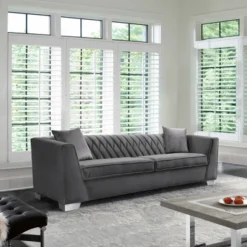 81″ Wesley Genuine Leather Power Footrest Tuxedo Arm Sofa – Armen Living