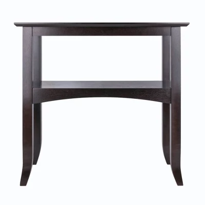 The Camden Console Table offers time-tested traditional styling enhanced with the graceful touch of slightly flared legs and curved aprons bordering the lower shelf. At 30″” wide, the console is sized just right for apartment living or smaller rooms. The console is a perfect addition to your reception area or entryway. Or use it in the dining room to show off your favorite framed photos, plants, or serveware. The console’s solid wood construction and rich Coffee finish will bring a natural appeal to your home, and its clean lines can blend with any decor.