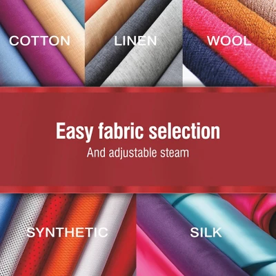 - EASY FABRIC SELECTION AND ADJUSTABLE STEAM: The temperature control dial with indicator light lets you quickly choose your fabric and sets the temperature accordingly, eliminating guesswork. The adjustable steam lever adjusts from no steam to full power.
