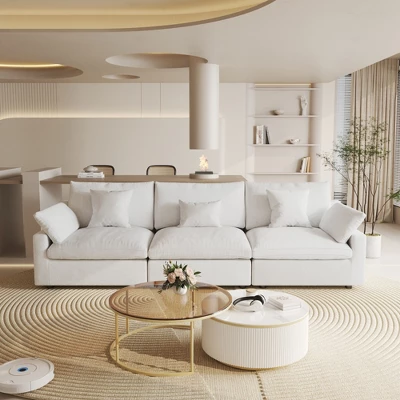 - 【Comfy Cloud Couch】 From the backrest to the seat cushion, a comfortable experience surrounds your back, waist, buttocks, and legs, fully allowing your body to rest and relax on top. Sofa Total Size: 3 Seater: 119.29″*39.37″*29.53″(L*W*H).