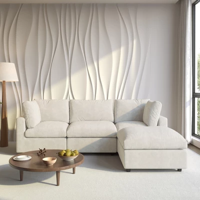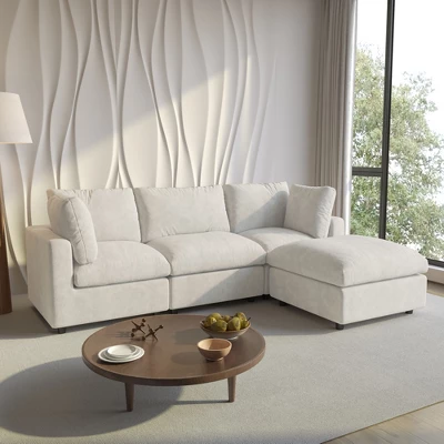 Please Read this BEFORE ORDERING!!![Put the Sofa Covers] the sofa item is the gray color when you open the boxes, But, please do not worry, all seat need to be put the sofa covers then will become right color.[Separate package delivery] Each seat is shipped in a separate package, so please be patient as your order may be delivered by several packages.The Cloud Sectional Sofa is designed to provide “cloud-like comfort.” This is the upgrade version of the Cloud Couch. It is Contemporary Feather Filled Sofa, Bring More comfortable and soft sitting feeling. In addition, the Cloud Sectional Sofa is highly modular: you can freely combine the seats, and arrange or remove the arm cushions. These features offer endless possibilities for arrangement, creating an inviting and cozy spot for lounging or entertaining guests. Note: *Free combination, chair, loveseat or sofa *Seat and back cushions and covers are removable, making it easy to clean the upholstery *Overstuffed down feather cushions for maximum comfort *Comfortable high-density and high-resilience foam/sponge *Solid wood frame, strong and stable *Upholstered in tough and soft linen fabric *Extra deep and Wide Seat *Instruction manual and all tools are included *Machine washable available, hand washing is recommended for optimal care, use low temperatures when machine washing, and air dry in a well-ventilated, cool area, avoid ironing and bleaching. *Recommended cleaning methods: mix 1/4 cup vinegar, 3/4 warm water and 1 tablespoon of dish soap or castile soap, put in a spray bottle, mist the soiled area, scrub with a soft cloth until the stain lifts.