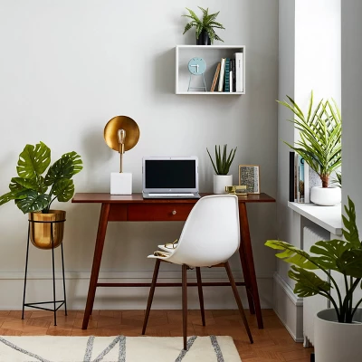 Give a touch of elegance to your dining room with the Copley Upholstered Dining Chair from Threshold™. Designed in clean simple lines that allude to the Mid Century décor, this chair is versatile and perfect for any style. Upholstered in your choice of rich linen or faux leather, it has a foam-padded seat for extra comfort and sturdy metal legs with a wood-look finish. It assembles in seconds and it is lightweight and durable. The Copley Upholstered Dining Chair is ideal to compliment your dining table or to accentuate one of the rooms in your home. Available in Dark gray, Light gray, Beige and Teal linen and in Black and Brown faux leather. Match it with the rest of the Copley Collection to get the full look!