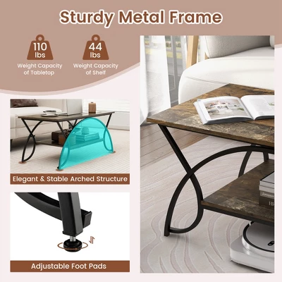 - Heavy-duty Metal Frame: The cocktail table is equipped with an arched metal frame for a sturdy construction. It tabletop can support 110 lbs of weight. Meanwhile, the adjustable foot pads can prevent the table from wobbling.