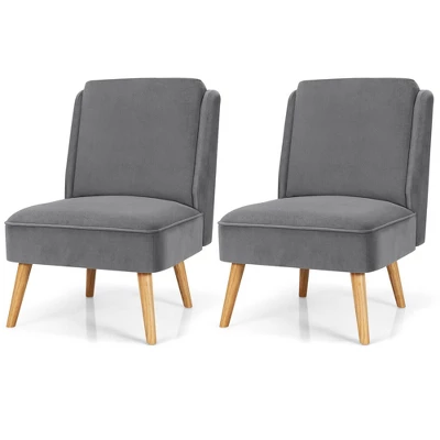 This armless accent chair is your good partner in daily life and provides a great place for you to relax. It features an ergonomic backrest which can support your back perfectly and release the pressure. Covered by velvet fabric and filled in thick sponge, this chair will offer you a comfortable sitting experience. In addition, the solid construction with pine wood frame and rubber wood legs ensures the durability, sturdiness and strong load bearing. There are non-slip foot pads on the bottom of legs, which will improve stability and protect your floor. This accent chair is suitable for living room, bedroom, office and other places. Don’t hesitate to take it home!