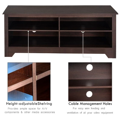 - Height-adjustable shelving provides ample space for A/V components & other media accseeories. Besides, cable management hols for easy wire feeding and ventilation of all your video equipemnt.