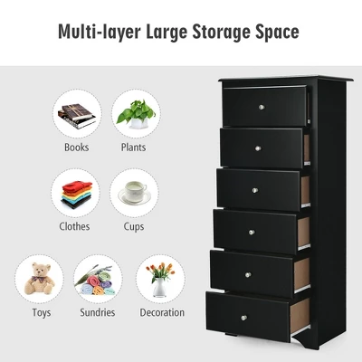 Costway 6 Drawer Chest Dresser Clothes Storage Bedroom Tall Furniture Cabinet