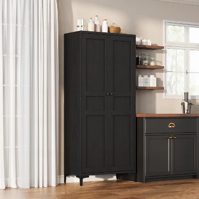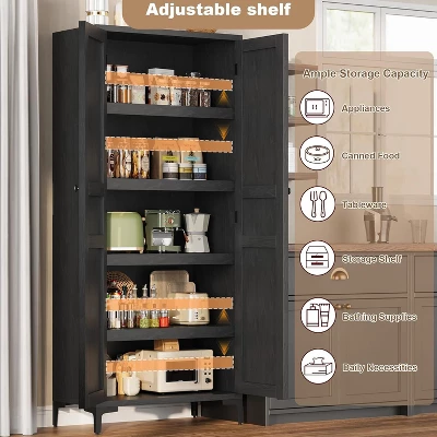 Transform your cluttered spaces into a tidy oasis with the Tall Pantry Cabinet! This sleek 63-inch organizer combines modern farmhouse charm with smart storage, featuring 5 tiers and 2 doors to effortlessly hide away kitchen pantry items, bathroom essentials, or office supplies. You’ll love the adjustable shelf—simply customize heights to fit cereal boxes, towels, or anything in between. Built tough with engineered wood and metal hardware, it stands strong against daily wear, while magnetic door closures keep contents secure. Versatile enough for any room, it’s your solution for a cleaner, happier home.