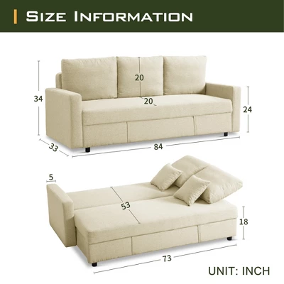 - Thoughtful Design: The convertible and movable sofa allows you to place the chaise lounge on either side, depending on your room’s layout. The bottom space in the middle is designed for storing the self-contained sofa bed mattress, and the chaise lounge can be used to store children’s toys, spare pillows, and blankets.