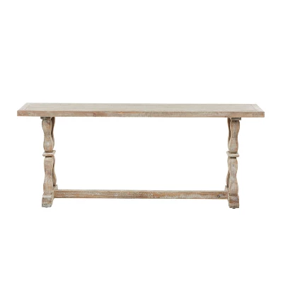 - •Accent bench that highlights a natural wood brown overall finish with whitewashed details