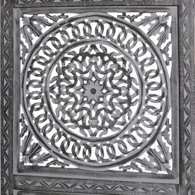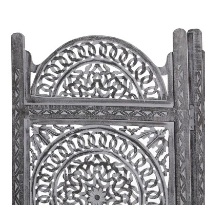 Use this wooden room divider to break up negative spacing in your home or to create privacy. This item ships in 1 carton. Due to the handmade nature of this item, no two will be alike, there will be slight differences in shape, size, and color. Suitable for indoor use only. This item ships fully assembled in one piece. Made in India. Item features 3 panel screens. This is a single black colored folding panel partition. Eclectic style.