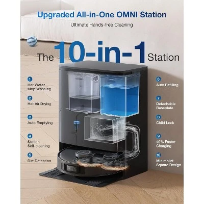 - All-in-One OMNI Station – The all-in-one OMNI station supports 158℉ hot-water mop washing, self-emptying, auto water refilling and hot-air drying. This multi-functional station prepares your DEEBOT T30S PRO for any cleaning challenge, embodying the essence of convenience and readiness.