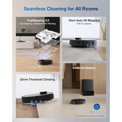 “Floor cleaning on another level” takes on a whole new meaning with the T30S PRO. Vacuum and mop with TruEdge Adaptive Edge Mopping with extending arm, designed for a wide cleaning path, edge-to-edge cleaning, and for getting in and around even the most elusive corners. Dual-spinning mops and auto mop lifting work together to rid stubborn stains while moving from carpets to hardwoods without interruption. An all-in-one OMNI Station auto empties, washes, dries, and refills so it’s always ready for its next cleaning. And with performance upgrades including dual obstacle avoidance systems, a large capacity 6,400mAh battery, and built-in voice control, you can leave all the cleaning to the T30S PRO.